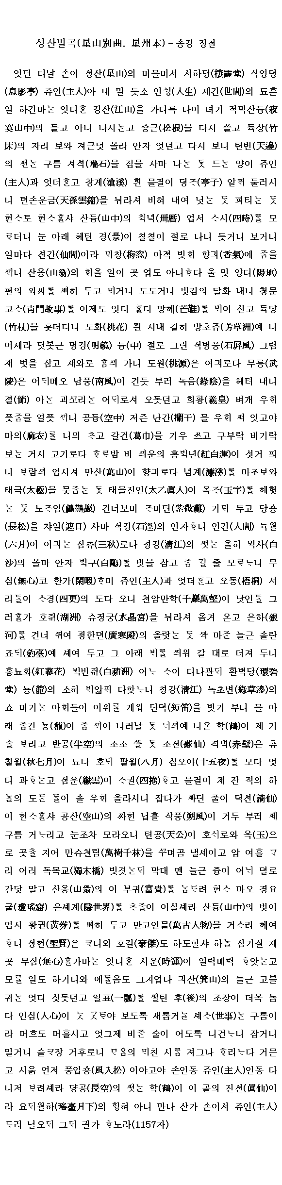송강 정철님의 "성산별곡(성주본)" 전문을 글감으로