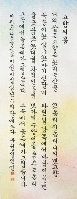 | 제9회(2017) 송파청소년수련관 한글서예 & 캘리그라피 작품전 (0) | 2018.01.14 |