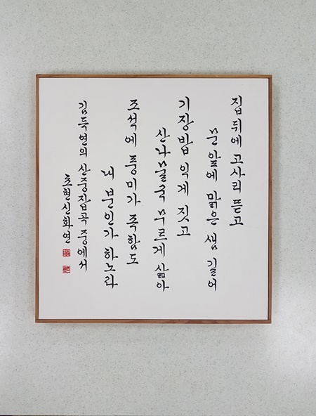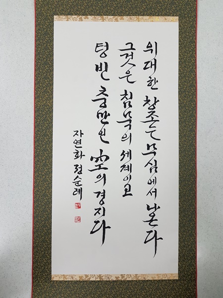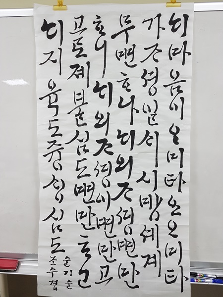 | 제10회(2018) 송파청소년수련관 한글서예 & 캘리그라피 작품전 (0) | 2019.01.23 |